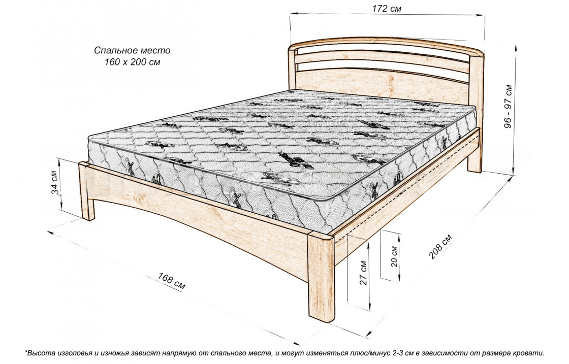 кровать Кровать Бостон выполнена из натурального древесного массива, имеет устойчивые ножки и дугообразные изножье с изголовьем. модель отличается износостойкостью, прочностью, лаконичным дизайном и надёжной конструкцией. купить изделие по специальной цене можно в интернет-магазине. Осуществляется доставка на дом по Ижевску и Удмуртской Республике.| Размер | Цена | |