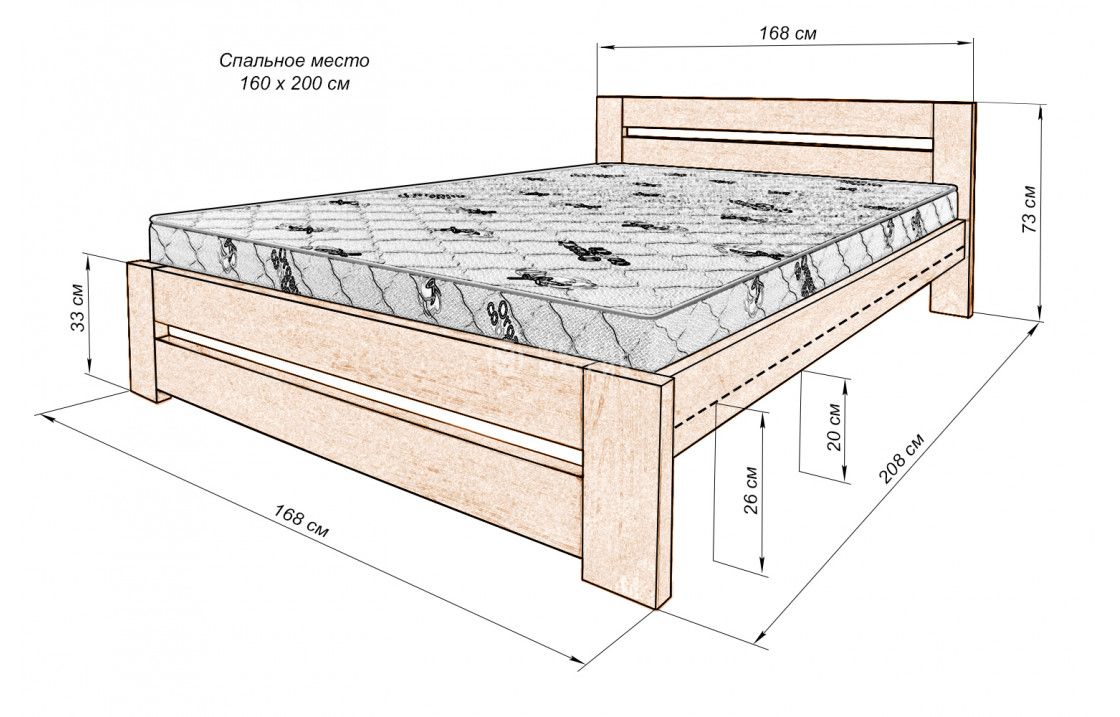 140x200 - глубина уменьшается на 100 мм = 685 мм
