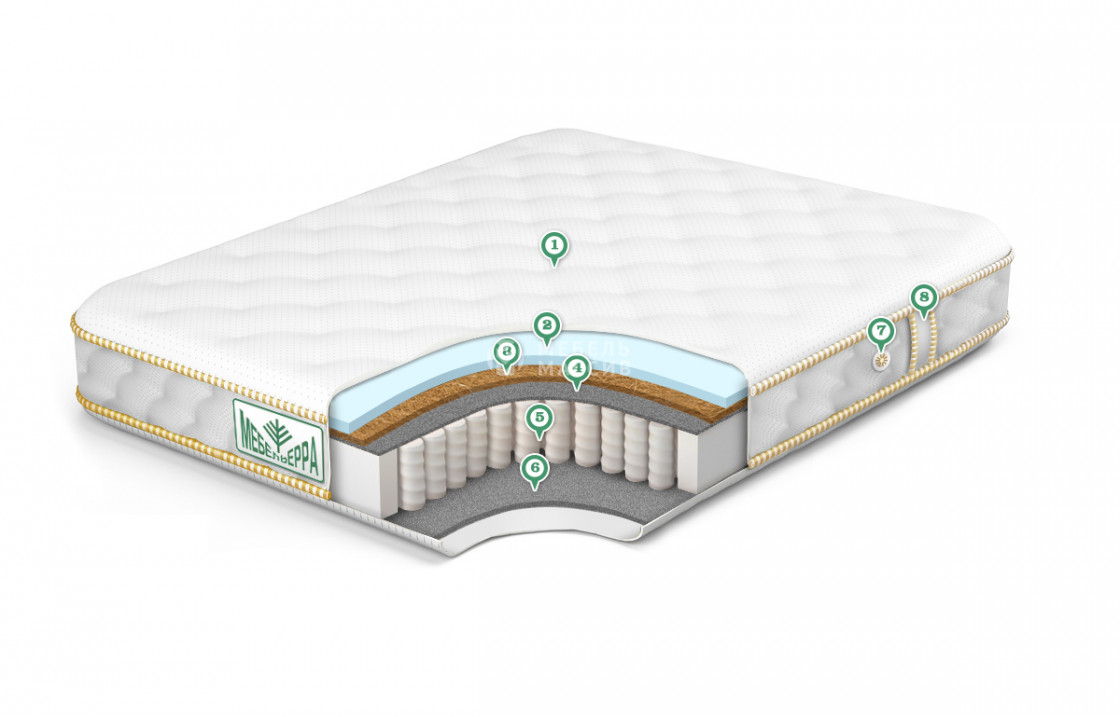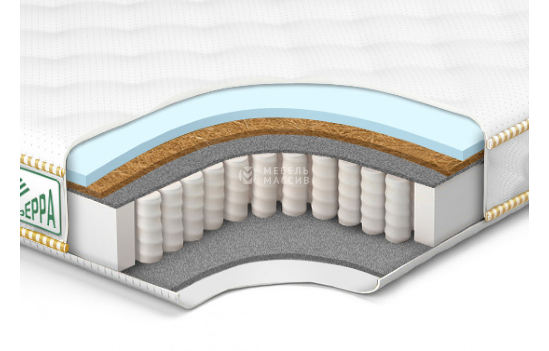 6. Кокос 1 см ? Кокос - переплетенные волокна кокосового ореха, растительного происхождения. Исключительные свойства кокоса в прочности, упругости и гигиеничности. Материал придает жесткости матрасу. Обладает отличной вентилируемостью, устойчив к любой влажности и перепадам температуры, гипоаллергенный и долговечный.